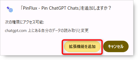 確認と許可: 拡張機能が要求する権限が表示されるので、内容を確認し問題がなければ「拡張機能を追加」をクリックします。