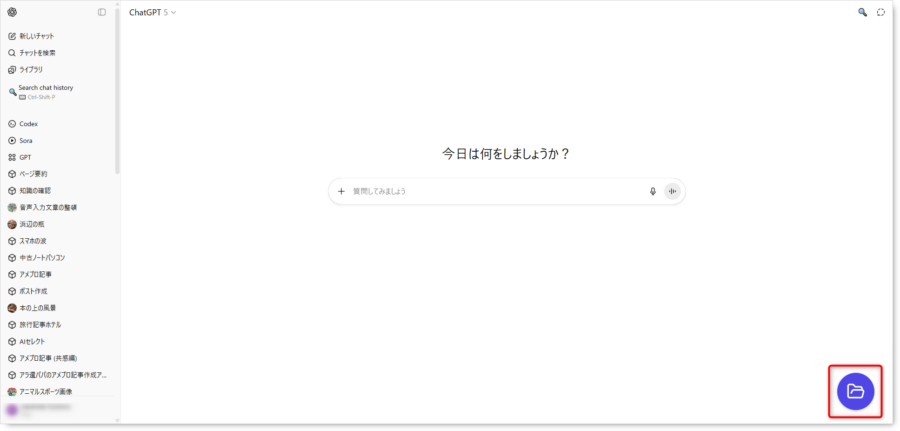 右下にフォルダマークが表示されるのでクリックします。