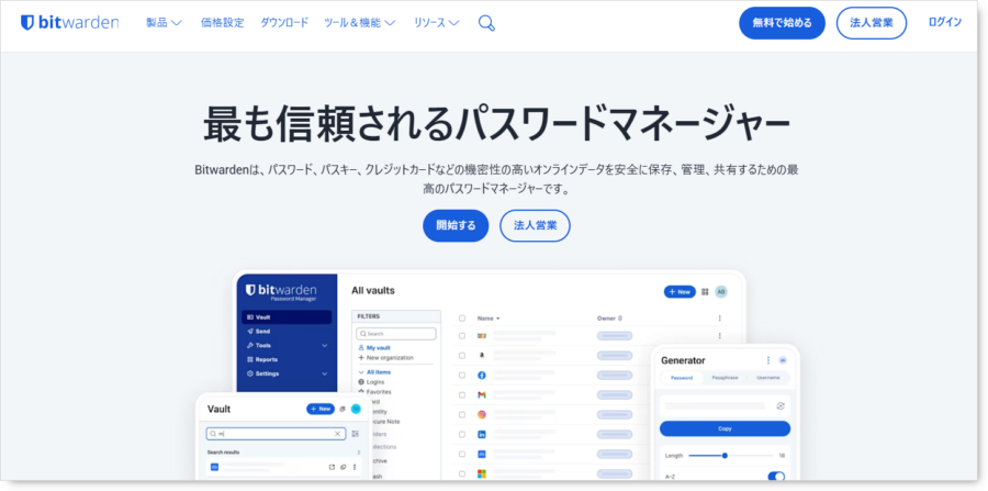 パスワードを一言管理してくれるツールは数多くありますが、このbitwardenはいくつIDとパスワードを登録しても無料で使用できるというメリットがあります。