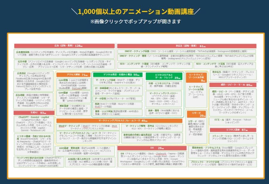 eラーニングサービス「AI-MA」は、AIとデジタルマーケティングに完全特化した1,000本以上の講座を収録した最先端の学習プラットフォームです。